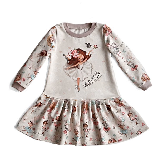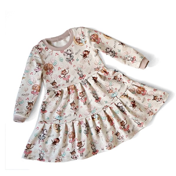 Rankų darbo suknelė mergaitei iš kokybiško Oeko-Tex standard sertifikuoto kilpinio trikotažo.